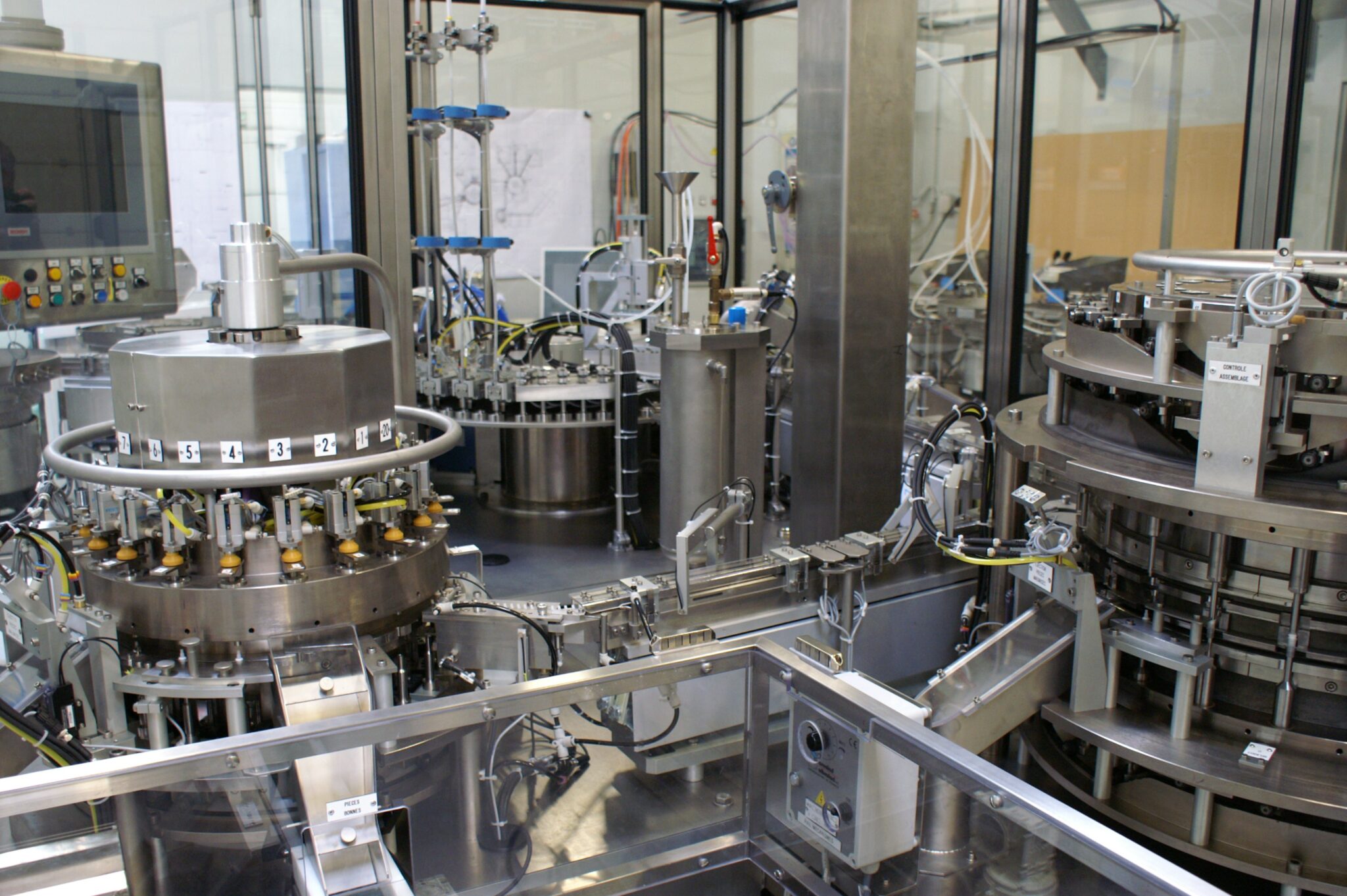 - Contrôle (étanchéité et débit, dimensionnel, aspects et intégrités, pesée, effort, couple, électrique, pression, dosage)